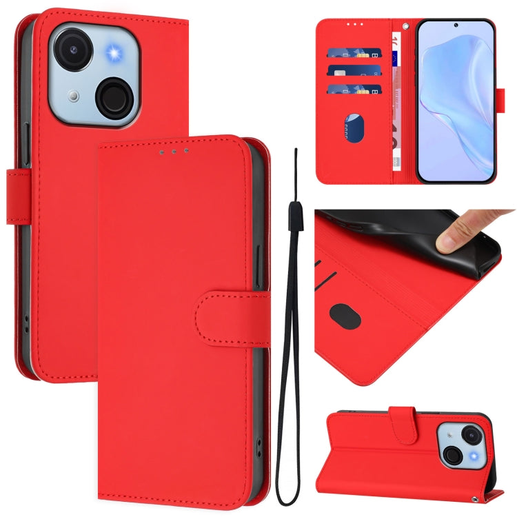 Funda de Piel Sintética con Cordón para Teléfono Itel A50C (Rojo)