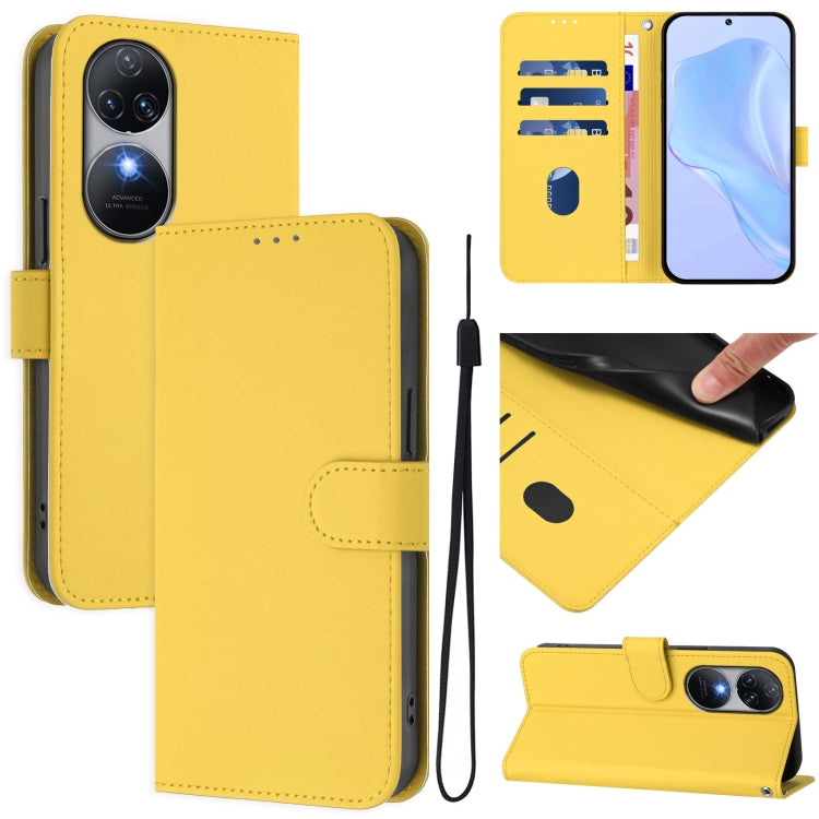 Funda de Piel Sintética con Cordón para Teléfono Oukitel C38 (Amarillo Limón)