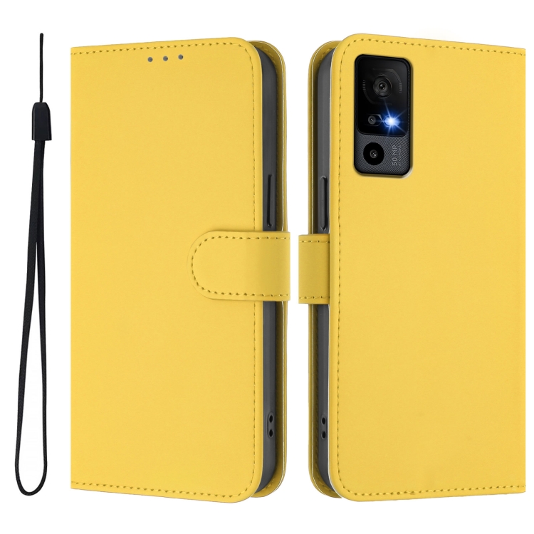 Funda de Piel Sintética con Cordón para Teléfono TCL 40 R 5G (Amarillo Limón)