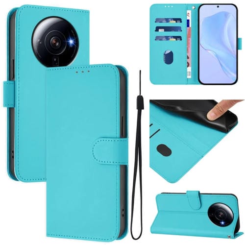 Funda de Piel Sintética con Cordón para Teléfono Xiaomi 12S Ultra Skin Feel de Color Liso (Azul Lago)