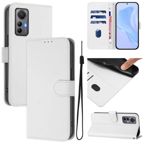 Funda de Piel Sintética con Cordón para Xiaomi 12 Lite, Color Sólido, con Tacto de Piel (Blanco)
