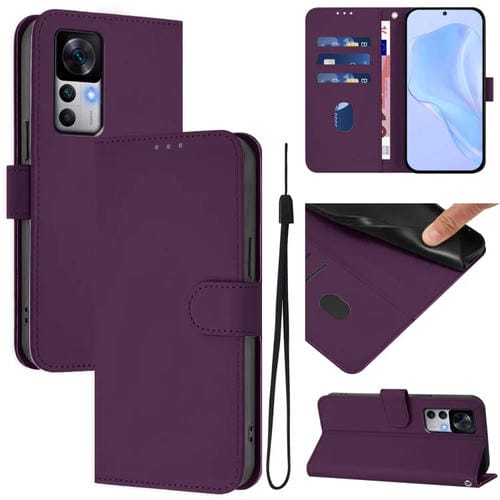 Funda de Piel Sintética con Cordón para Xiaomi 12T/12T Pro, Color Liso, con Tacto de Piel (Violeta)
