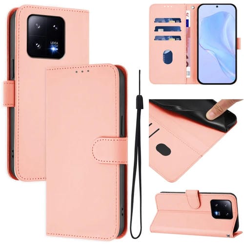 Funda de Piel Sintética con Cordón para Xiaomi 13 Pro 5G, Color Liso, con Tacto de Piel (Rosa)