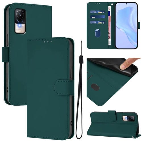 Funda de Piel Sintética con Cordón para Xiaomi Civi 1S (Verde Oscuro)