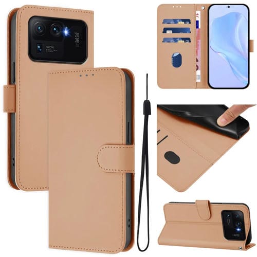 Funda de Piel Sintética con Cordón para Xiaomi Mi 11 Ultra (Color Piel)
