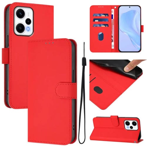 Funda de Piel Sintética con Cordón para Xiaomi Poco F5 (Color Sólido) (Rojo)