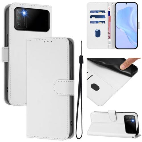 Funda de Piel Sintética con Cordón para Xiaomi Poco M3 (Color Blanco)