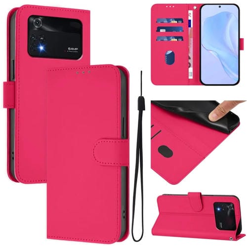 Funda de Piel Sintética con Cordón para Xiaomi Poco M4 Pro 4G (Rosa y Rojo)
