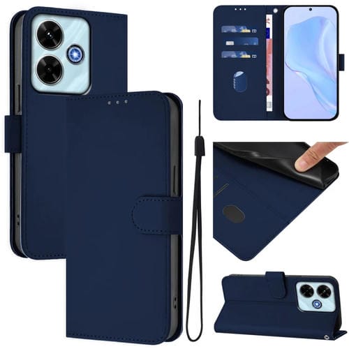 Funda de Piel Sintética con Cordón para Xiaomi Poco M6 4G (Azul Marino)