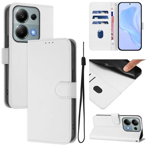 Funda de Piel Sintética con Cordón para Xiaomi Poco M6 Pro 4G (Color Blanco)