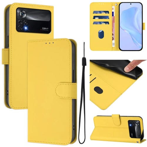 Funda de Piel Sintética con Cordón para Xiaomi Poco X4 Pro 5G (Amarillo Limón)