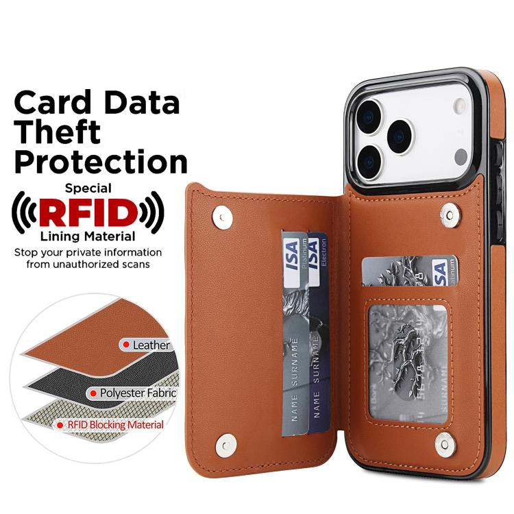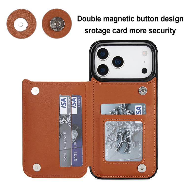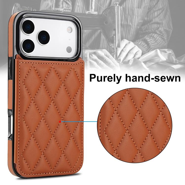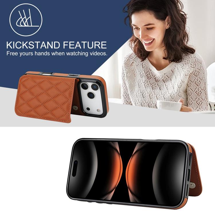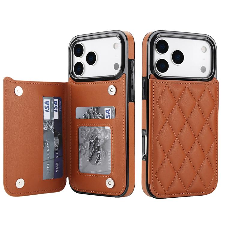 Funda de piel sintética con diseño rómbico y doble hebilla para iPhone 17 Pro (marrón)