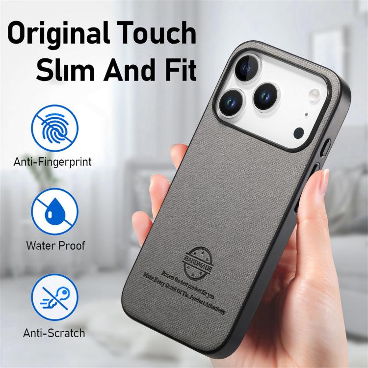 Funda de piel sintética con parte trasera de sarga para iPhone 17 Pro Max (gris)