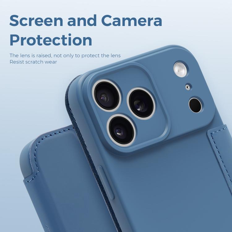 Funda de piel sintética con tacto similar a la piel líquida para iPhone 17 Pro Max con ranuras para tarjetas (morado)