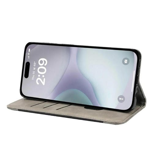 Funda de piel sintética con textura para iPhone 17 (gris)