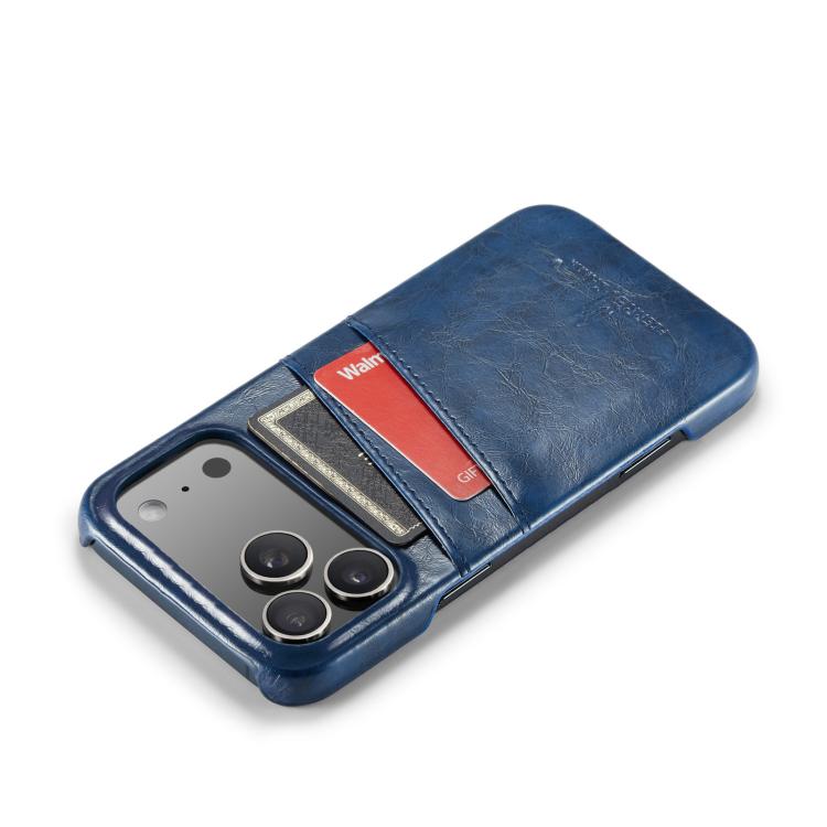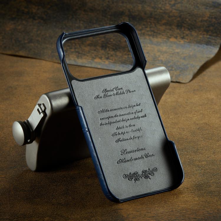 Funda de piel sintética con textura retro de cera de aceite Fierre Shann para iPhone 17 Pro (azul)