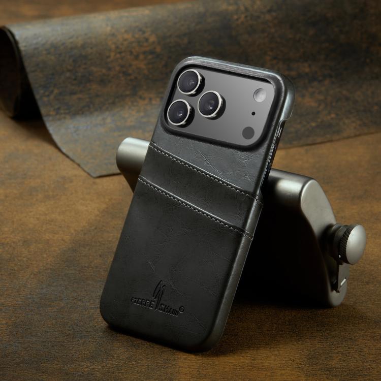 Funda de piel sintética con textura retro de cera de aceite Fierre Shann para iPhone 17 Pro, con ranuras para tarjetas (gris)