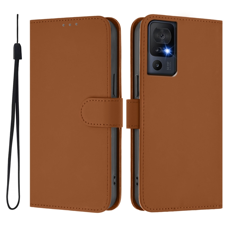 Funda de Piel Sintética con Cordón para TCL 40 Se (Marrón)