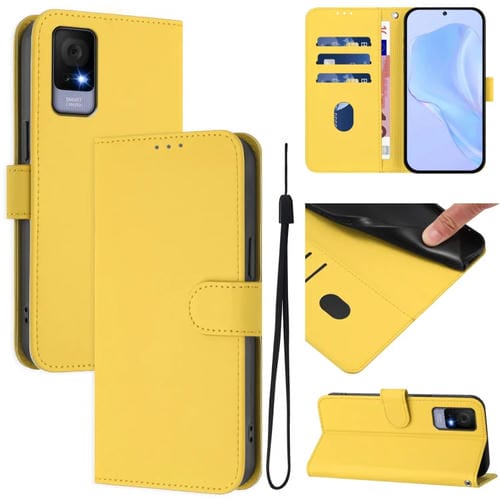 Funda de Piel Sintética con Cordón para TCL 405/406/408 (Amarillo Limón)
