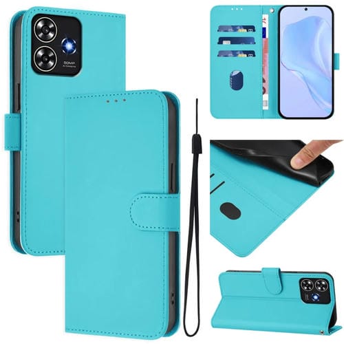 Funda de Piel Sintética con Cordón para ZTE Blade A73 4G (Azul Lago)