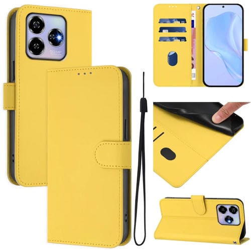 Funda de Piel Sintética con Cordón para ZTE Blade V60 4G Axon 60 4G (Amarillo Limón)