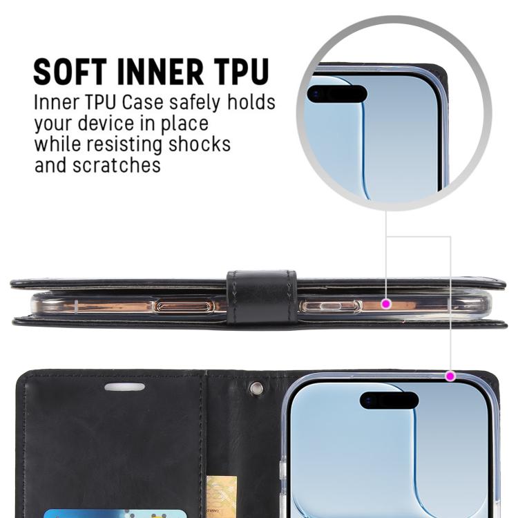 Funda de piel texturizada Crazy Horse GOOSPERY BLUE MOON para iPhone Air (negra)