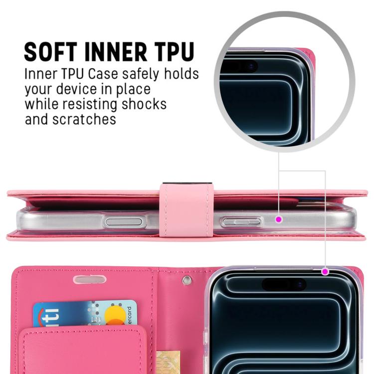 Funda de piel texturizada Crazy Horse GOOSPERY RICH DIARY para iPhone 17 Pro Max (rosa)