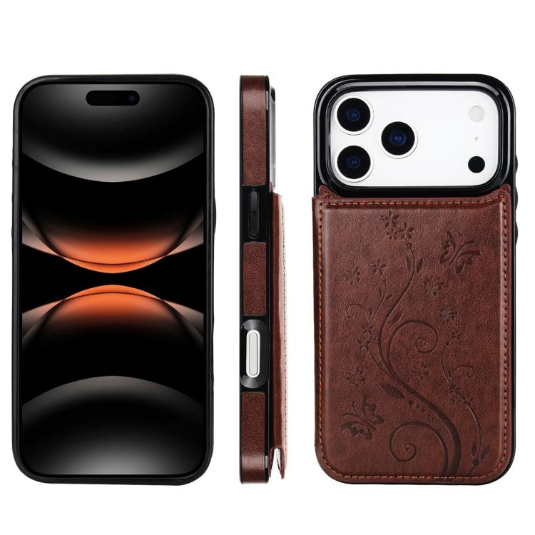Funda de PU con doble hebilla y estampado de mariposa para iPhone 17 Pro Max (marrón)