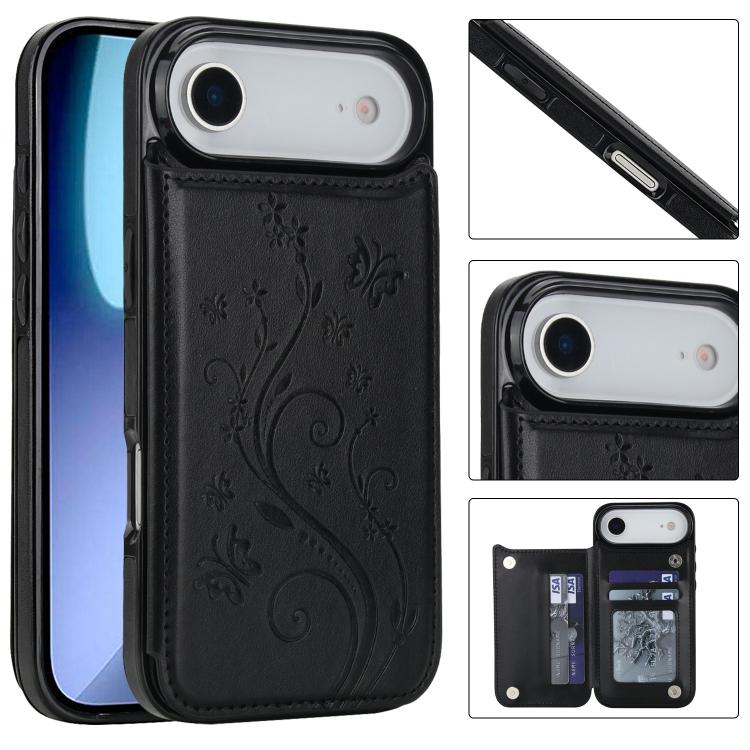 Funda de PU con doble hebilla y estampado de mariposa para iPhone Air (negra)