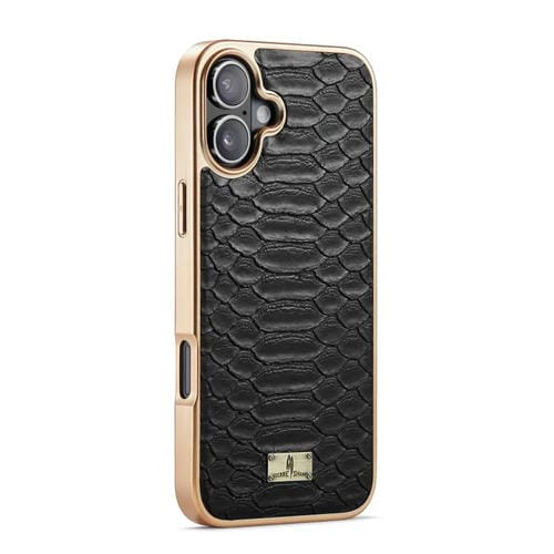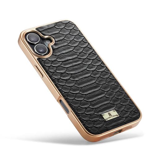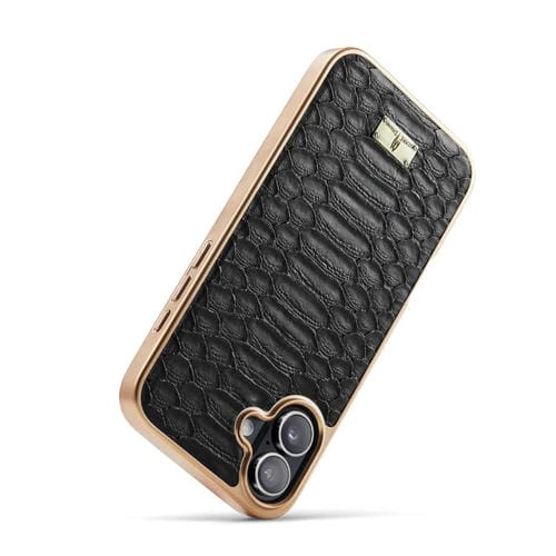 Funda de PU galvanizada con textura de pitón Fierre Shann para iPhone 17 (negra)
