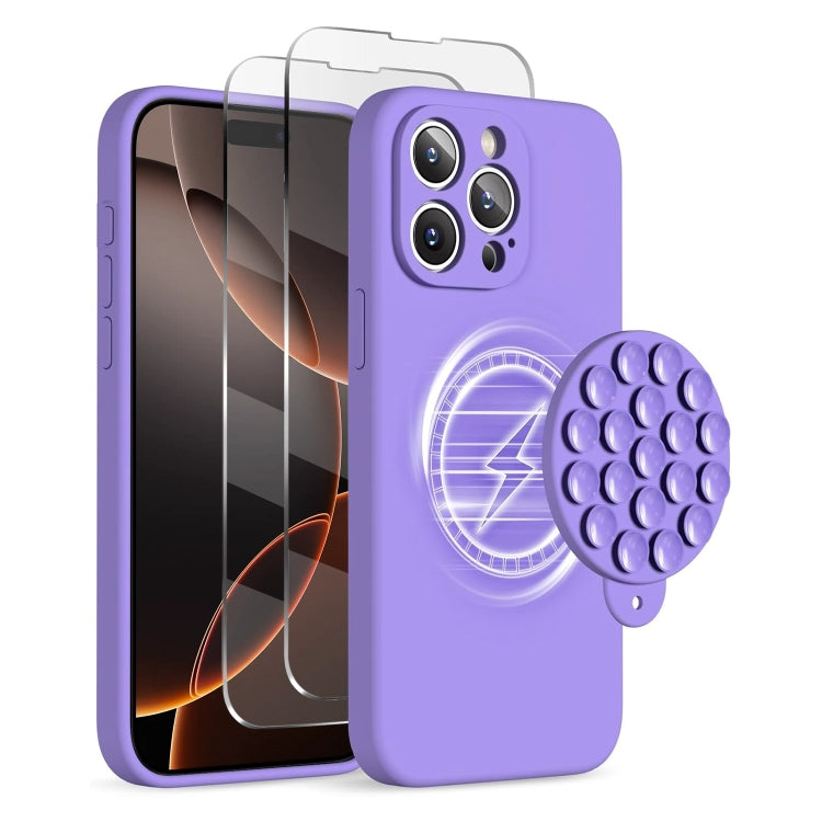 Funda de Silicona con Ventosa Magsafe para iPhone 16 Pro con Película de Pantalla (Morado)