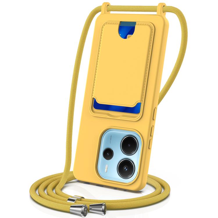 Funda de silicona líquida de color sólido con cordón para Redmi Note 14 4G (163,25 mm) con tarjetero integrado (amarillo)