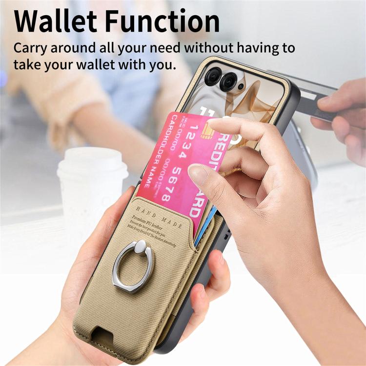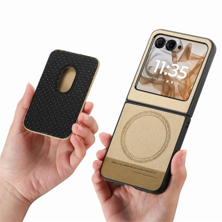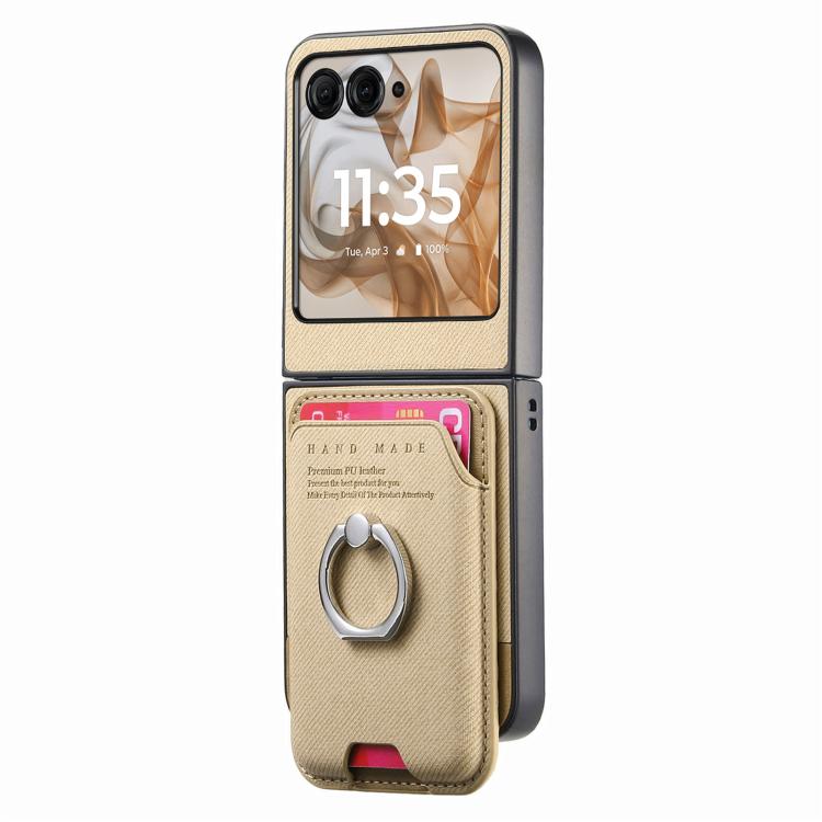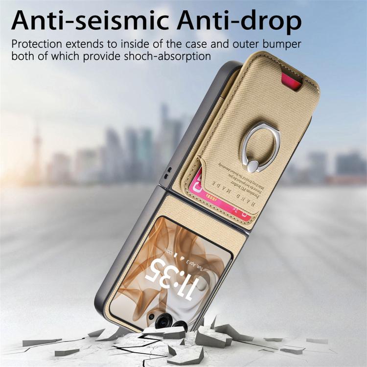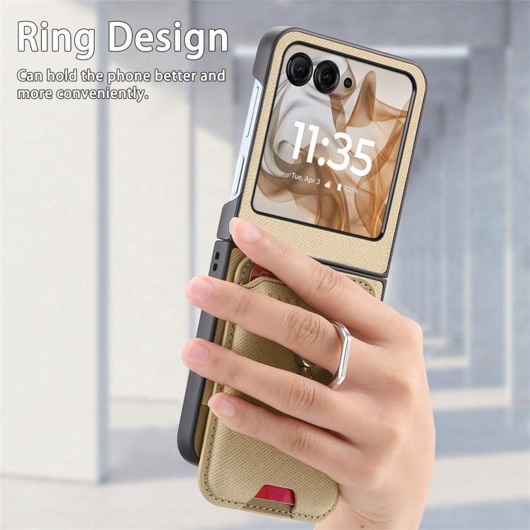 Funda de tela sarga con anillo magnético para Motorola Moto Razr 50/60 (caqui)