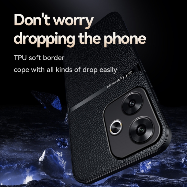 Funda de Teléfono a Prueba de Golpes con Cobertura Total Magnética de Cuero Litchi para Redmi Turbo 3 / Xiaomi Poco F6 (Negro)