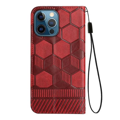 Funda de Teléfono iPhone 12 Pro Max Cuero Magnético Textura de Fútbol (Rojo)