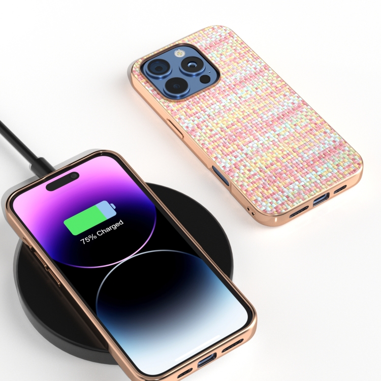 Funda de Teléfono PU con Marco Galvanizado y Enrejado para iPhone 16 Pro Max (Rosa)