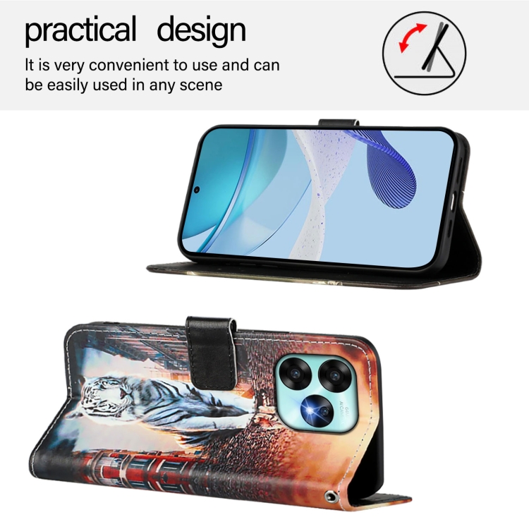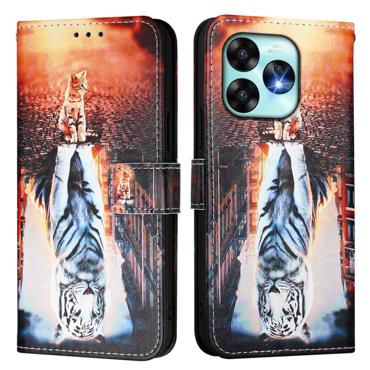 Funda de Cuero para Umidigi A15 A15C A15T con Patrón de Gatos y Tigres