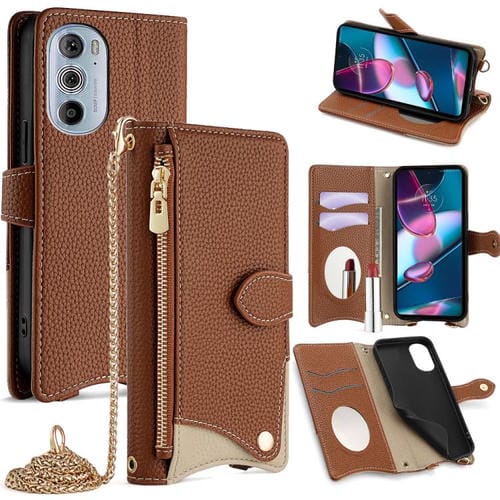 Funda de Cuero con Cadena Cruzada y Cola de Pez para Motorola Edge+ (2022) / Edge 30 Pro (Marrón)