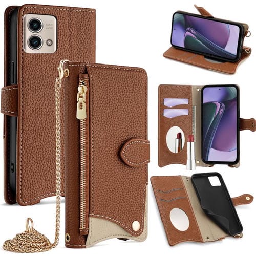 Funda de Cuero con Cadena Cruzada y Diseño Cola de Pez para Motorola Moto G Stylus 5G (2023) (Marrón)