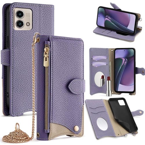 Funda de Cuero con Diseño de Lichi y Cadena Cruzada para Motorola Moto G Stylus 5G (2023) (Morado)