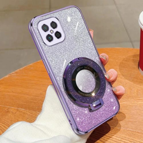 - 1x Funda TPU con Soporte Redondo y Purpurina Degradada para Huawei Nova 8 Se (Morado)