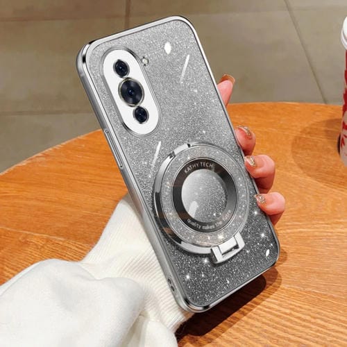 - 1x Funda de TPU con Soporte Redondo y Purpurina Degradada para Huawei Nova 10 Pro (Plateada)