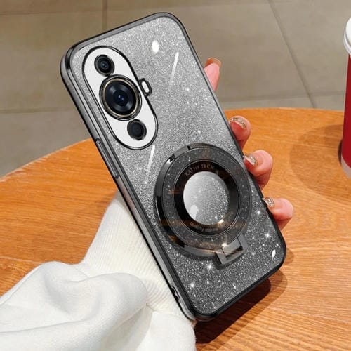 • 1x Funda de TPU con Soporte Redondo y Purpurina Degradada para Huawei Nova 11 Pro (Negra)