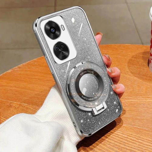 - 1x Funda de TPU con Soporte Redondo y Purpurina Degradada para Huawei Nova 11 Se (Plateada)