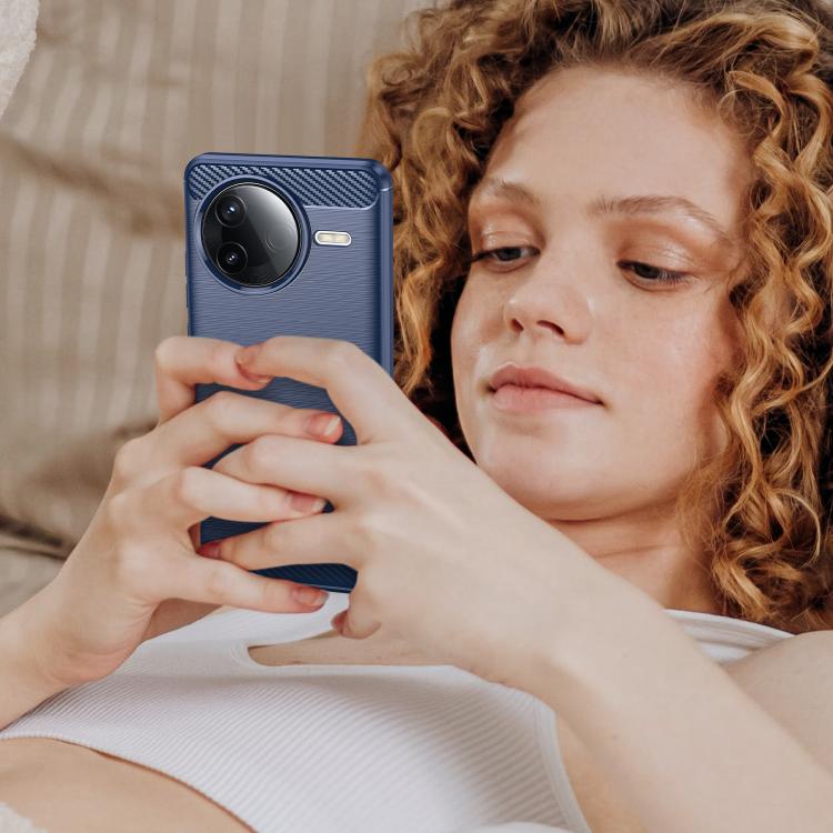 Funda de Teléfono de TPU con Textura Cepillada de Fibra de Carbono para Redmi K80 (Azul)