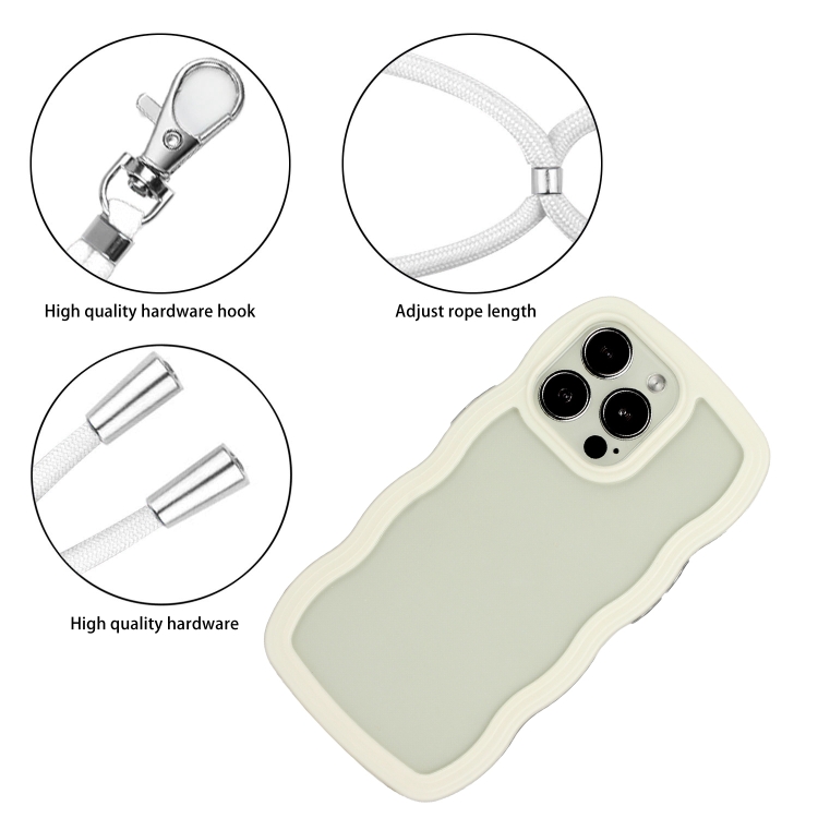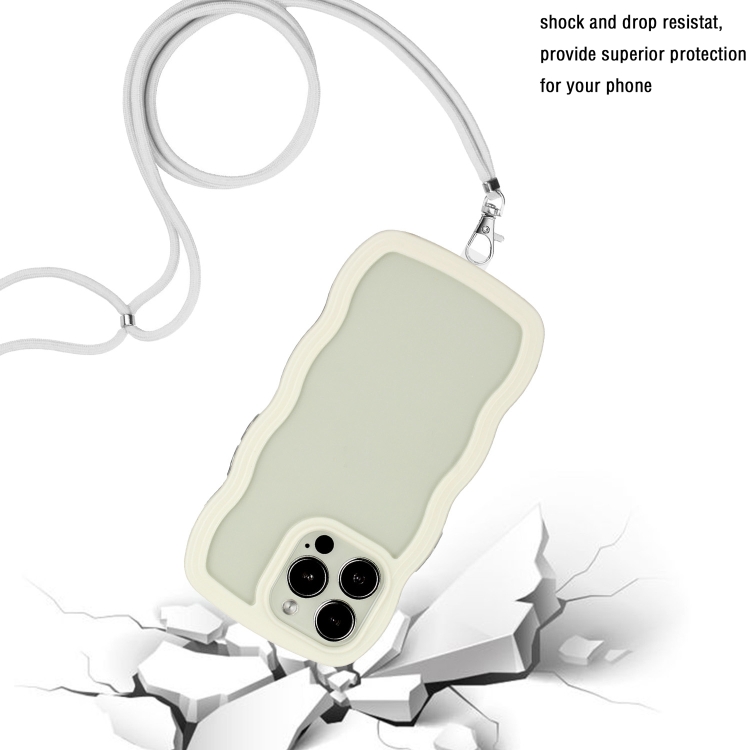 Funda de Teléfono TPU Transparente con Cordón para iPhone 16 Pro Max Candy Color Wave (Blanco)