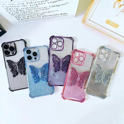 Funda de TPU con diseño de mariposa 3D brillante y galvanizada para iPhone 17, a prueba de golpes y con cuatro esquinas (azul degradado)