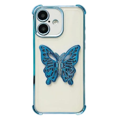 Funda de TPU con diseño de mariposa 3D galvanizada para iPhone 17 (azul)