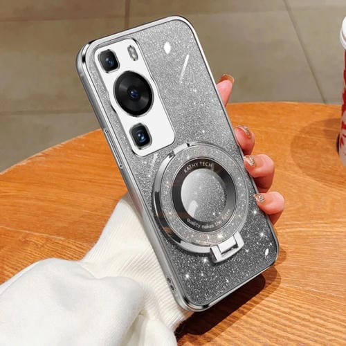 Funda TPU con Soporte Redondo y Purpurina Degradada para Huawei P60 (Plateada)