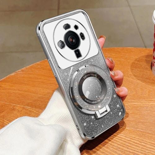 Funda de TPU para Teléfono Xiaomi 12S Ultra con Soporte Redondo y Purpurina Degradada (Plateada)